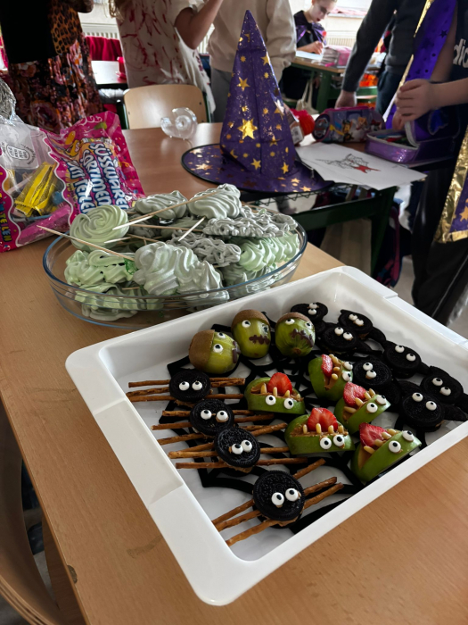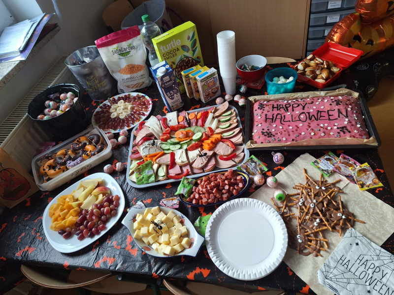 Auch dieses Jahr wurde in der Siedlungsgrundschule wieder eine große Halloweenfeier veranstaltet. Die Klassenlehrer haben das Unterrichtsmaterial an die gruselige Stimmung angepasst und dank der Eltern konnten wunderschöne Frühstücksbuffets den Tag ungeheuer lecker gestalten. Zudem gab es eine große Polonaise durchs ganze Schulhaus und eine Kinderdisko. Die schaurig-schönen Kostüme der Kinder haben den Tag perfekt gemacht!